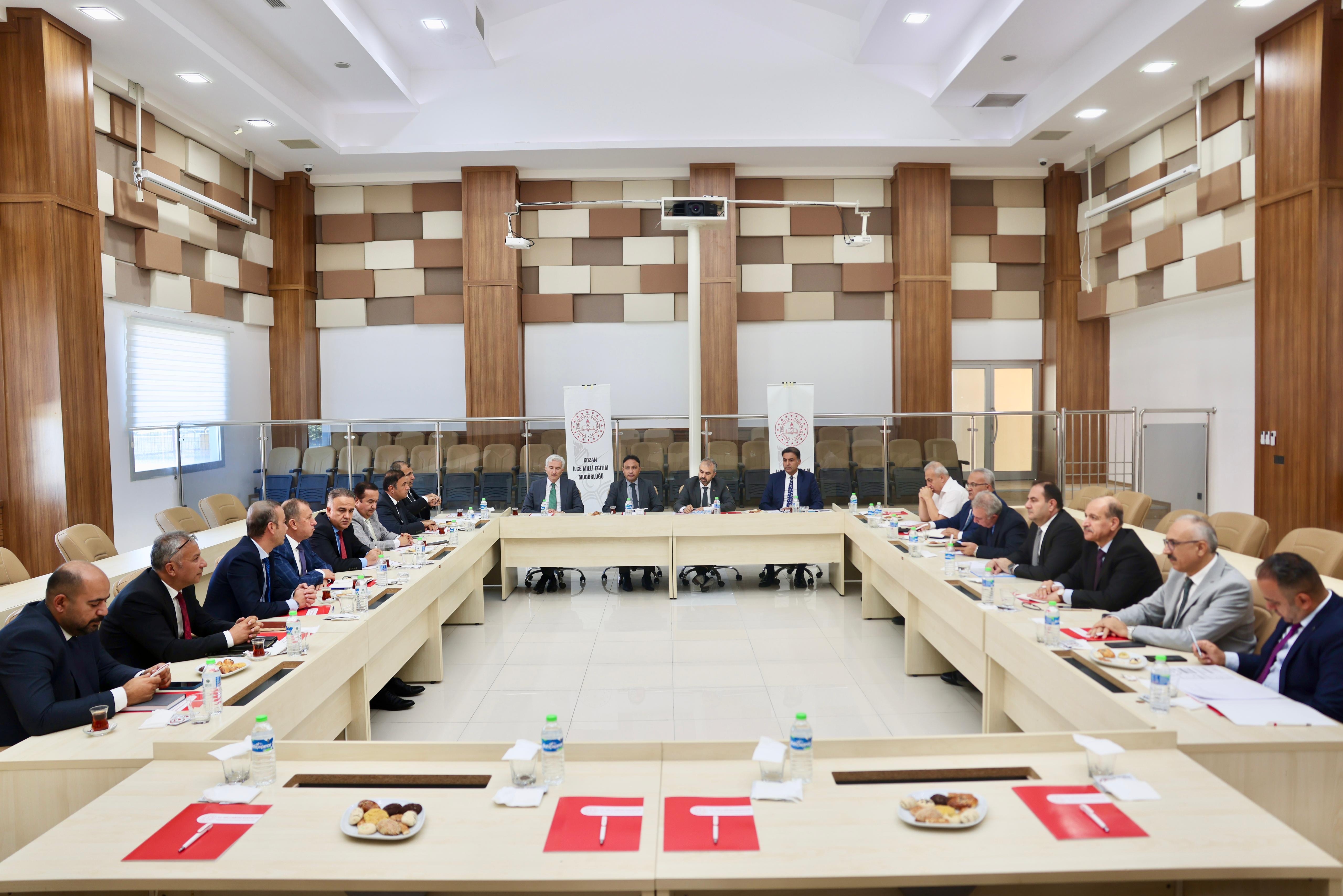İl Millî Eğitim Müdürümüz Sn. Yusuf Tüfekçi'nin başkanlığında, ilçe millî eğitim müdürlerimizin katılımıyla kapsamlı bir değerlendirme toplantısı gerçekleştirildi. Eğitim-öğretim süreçleri, planlamalar ve yürütülen çalışmalar üzerine istişarelerin yapıldığı toplantı, Kozan Ticaret Borsası Toplantı Salonu'nda düzenlendi.